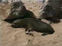| Om 5 uur zijn we opgestaan, zodat we om 6 uur op weg konden naar Cape Jervis, alwaar onze veerboot naar Kangaroo Island zou vertrekken. We gingen expres vroeg weg om de "drukte" op de wegen te voorkomen en zodat Evert aan het rijden met de camper kon wennen (met name het schakelen). Gerard en Marie reden voorop, zodat we de weg niet zelf hoefde te zoeken. We waren er vroeg genoeg om de voorgaande veerboot te zien vertrekken. In de tussentijd hebben we maar wat koffie gedronken. Evert moest de camper achteruit op de boot zetten, maar dat ging niet helemaal goed. De wagen gings iets te veel naar links, waardoor die naast de loopplank terecht dreigde te komen. Een bemanningslid heeft toen de wagen maar op z'n plek neergezet. De ruimte was wel heel erg krap tussen de wagens, dus dat was maar beter ook. Het varen duurde een uurtje. Het was heerlijk aan boord (benedendeks achter de ruiten i.v.m. de wind). Op het eiland aangekomen eerst maar weer eens wat koffie gedronken en toen op naar het informatiecentrum. We kregen daar de nodige folders. Ook hebben we een pas gekocht om alle belangrijke bezienswaardigheden te zien. De eerste dieren die we zagen op het eiland waren dode kangeroes (of beter gezegd wallibi's) langs de weg. Dat was niet bepaald een leuk gezicht. Langs de kust hebben we onze eerste lunch in de camper gegeten. Daarna zijn we op weg gegaan naar Seal Bay over de fantastische wegen van Kangaroo Island, maar niet heus. Op die gravelwegen kon je met onze camper maximaal 30 km rijden en soms nog geen eens 10 km en dan schudde je nog heen en weer. Van schokbrekers in een camper hebben ze schijnbaar nooit gehoord. Bij Seal Bay zijn me met een ranger het strand opgegaan om de zeeleeuwen van dichtbij te zien (ca. 10 meter). De meeste waren wel erg veel aan het luieren, maar er waren ook een paar actievelingen bij. Ze waren niet zo luidruchtig als in CaliforniÙ. Daarna langzaam op weg naar de camping in het westen van het eiland, genaamd Western K.I. Caravan Park. Tot onze verbazing zei de campingbaas dat er koala's in de buurt van de camping waren en dat er meestal ook wel een paar in de bomen van de camping zelf zaten. Er stonden namelijk genoeg eucalyptisbomen. En ja hoor, hij had gelijk. Een meter of tien van onze camper af zat een koala op z'n gemak te eten. Wat een scheetje. Op de camping hebben we toen voor het eerst die vakantie gebarbequed (en zeker niet voor de laatste keer). 's Avonds in het donker liepen er volop wallibi's te schooien op het grasveld van de camping. Er liep ook nog een possum tussen, maar in het donker was het allemaal wat lastig te zien. Die dag hebben we vanaf Adelaide 284 km gereden. | |