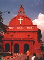 | Om 7.30 zijn we opgestaan om voor die dag een tour te regelen naar Malakka. Het weer was erg bewolkt die dag. In Malakka aangekomen hebben we eerst lekker Maleis gegeten, alhoewel het wel erg verdacht veel leek op Chinees. In Malakka was het erg warm, maar heel mooi. Vooral die rode (hollandse) gebouwtjes en Hollandse molen, maar ook een Portugese kerk uit 1710 en een oude brandweer en nog veel meer. Er lag in de haven ook nog een oud (nagebouwd) Portugees schip. Vervolgens naar het Portugese fort geweest, waar maar weinig van over was. Evert en Mart zijn daar boven geweest en hebben nog een aantal grafzerken van hollanders uit de tijd van de koloniÙn gezien. Bep liep ondertussen beneden rond, waar genoeg te zien was. Op de terugreis hebben we nog een regenbuitje gehad. We waren om 7:30 terug en hebben vervolgens bij Kentucky Fried Chicken wat "kleffe" kip, patat, aardappelpuree en een broodje (!?) gegeten. | |