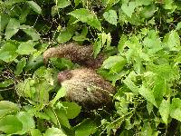 ¦s Middags was het gelukkig droog. In drie kano¦s gingen we met de hele groep er op uit. Eentje van 8 personen, eentje van 6 en eentje van 4. Toch best wel pittig als je per boot drie roeispanen hebt. Gelukkig redelijk afgewisseld, waardoor het goed te doen was. Ook weer de nodige beesten gezien, waaronder een luiaard op een paar centimeter afstand. Ik had hem kunnen neuzen als ik daar zin in had gehad. Schattig zo¦n beest.