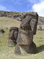 Vandaag eigenlijk nog een beetje de laatste plekjes bezocht die we nog niet gezien hadden en de wat mooiere plaatsen opnieuw bezocht. Best wel lekker relaxt zeg maar. Eerst naar de "hoedenfabriek", de vulkaan Puna Pau. Van de steen aldaar werden vroeger de hoedjes voor sommige Maoi's gehakt. Deze steensoort is veel roder dan die van Rano Raraku. Daarna opnieuw de oostroute. Eerst nog even naar Vaihu, want die hadden we gisteren nog niet bezocht. Daarna naar Tongariki, alwaar we de kervingen van Papa Tataku Poki nog niet hadden bezocht. Toen naar het strand van Anakena, waar we gepicknickt hebben en een poosje aan het strand hebben doorgebracht. Toen nog even naar Rano Raraku om te zoeken naar een Maoi die we in een boekje zagen, maar die we gisteren niet hadden gezien. Een lokale gids dacht hem te weten, maar bracht ons naar een beeld die we al gezien hadden. Vervolgens keek hij nog eens goed en zei dat het aan de andere kant van de kraterrand lag. Dus wij uiteindelijk toch maar weer de krater ingewandeld en daar nog eens gekeken. De bewuste Maoi hebben we uiteindelijk niet gevonden, maar het was wel weer een mooie wandeling.