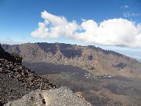 Vroeg op dus. Niet echt veel geslapen, want het was toch wel erg koud in bed. Op naar de vulkaan, die in een grotere vulkaanmond ligt. Het was nog wat schemerig toen we gingen wandelen vanuit het dorpje naar de voet van de vulkaan. Het klimmen ging al gauw vrij pittig. Na een uurtje of drie werd het toch wat veel en ik werd toch wel een beetje benauwd voor de afdaling die twee keer zo snel zou gaan. Ik had nog geen pad gezien die dat mogelijk moest maken.