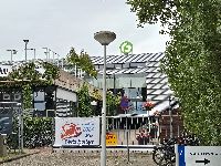 Daarna maar eens op zoek naar het sportcentrum. Het zou op ongeveer 12 minuten lopen moeten liggen. Even voorbij het olympisch stadion zie ik een loopbrug over het water richting het Olympisch hotel. Dat lijkt korter dan de optie van GoogleMaps. Alleen loop ik een stukje te ver door. Ach ja, even terug lopen en dan zie ik het Frans Otten Stadion al. Het is alweer een poosje geleden dat ik daar geweest ben, dus ven zoeken naar de ingang. Met de auto parkeer je altijd eronder, maar nu kom je van de zijkant aan. Ik zie nog net ergens Registration staan, dus daar moet ik me melden. Het is niet al te druk, dus dat is zo gebeurd. Ik ontvang mijn pas en een goodiebag met diverse spullen.