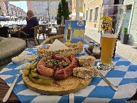 Na een paar uur wandelen kreeg ik toch wel dorst en ben ik op een van de pleinen wat op gaan zoeken. Tja, dan neem je toch maar een klein pilsje van slechts een halve liter. Kleiner hebben ze niet. Alleen groter. En dat gecombineerd met diverse worsten, dan heb je toch wel het gevoel dat je in Duitsland zit.