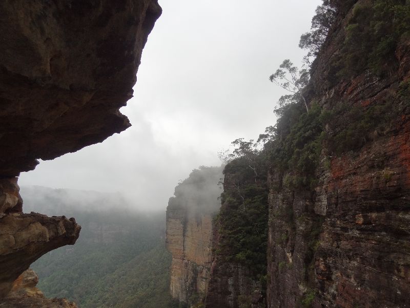 Echopoint in de mist (Katoomba, Blue Mountains, Australie)