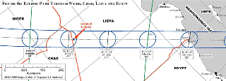 Hieronder staan een tweetal animaties van de zonsverduistering. De eerste geeft het beeld aan hoe de maan voor de zon kwam. De tweede geeft aan hoe de schaduw van de maan over Libiƫ heen trok.